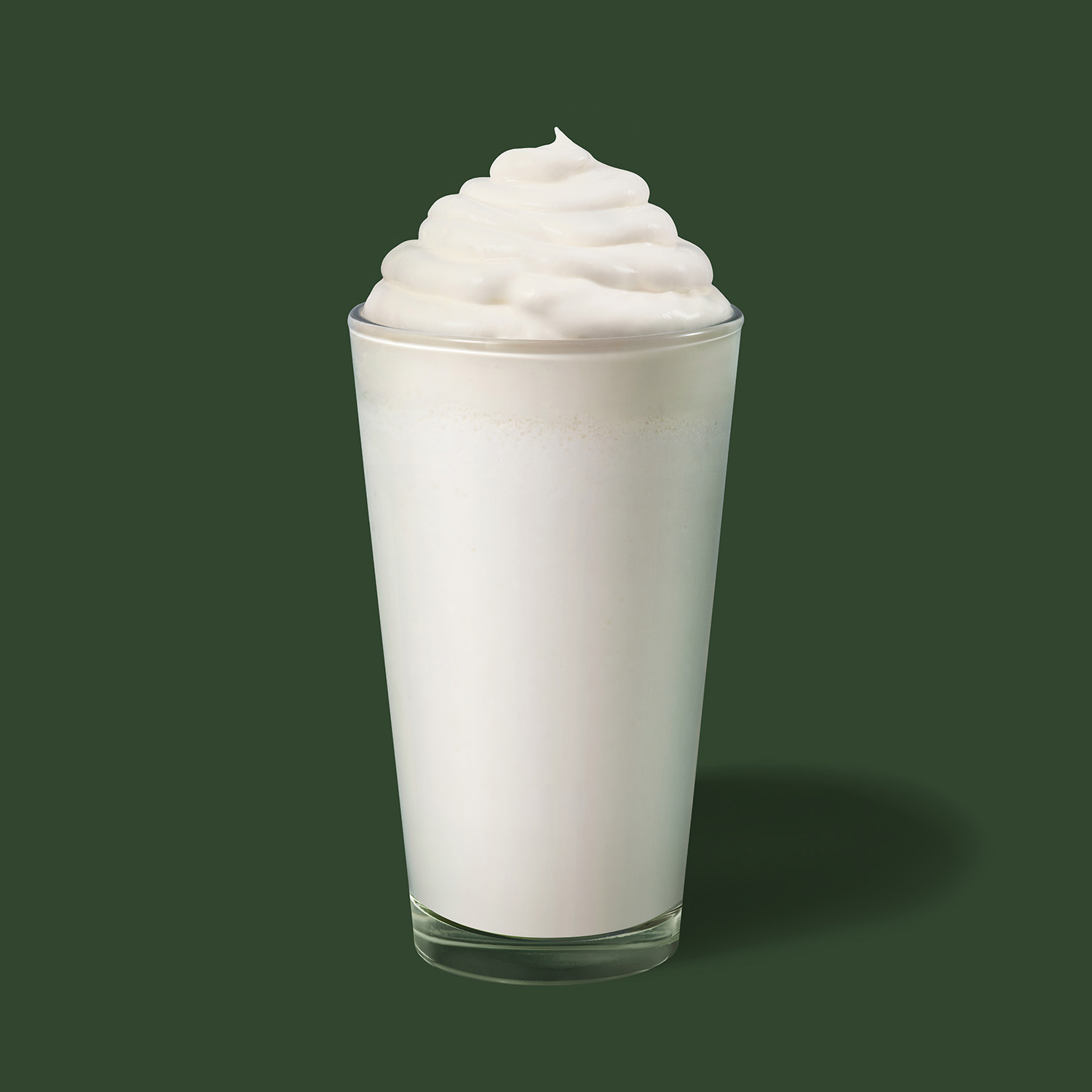 Frappuccino® a base di caffè con salsa al cioccolato bianco decorato con panna montata.