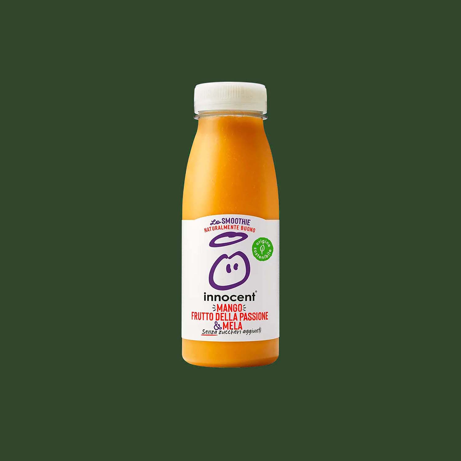 Dolce mix di succo di mela, purea di mango, purea di banana, succo d'arancia, succo del frutto della passione, purea di pesca e succo di lime