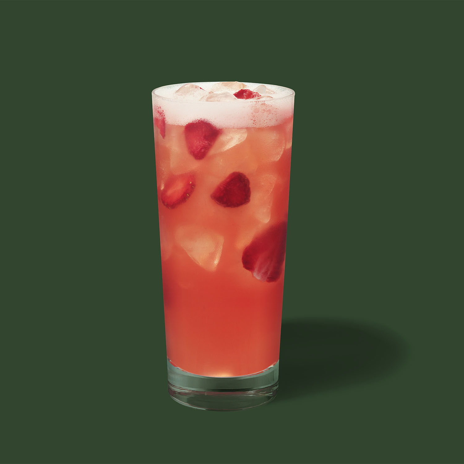 Una bevanda fresca dai dolci sapori di fragola e note di Açai, con pezzetti di fragola.