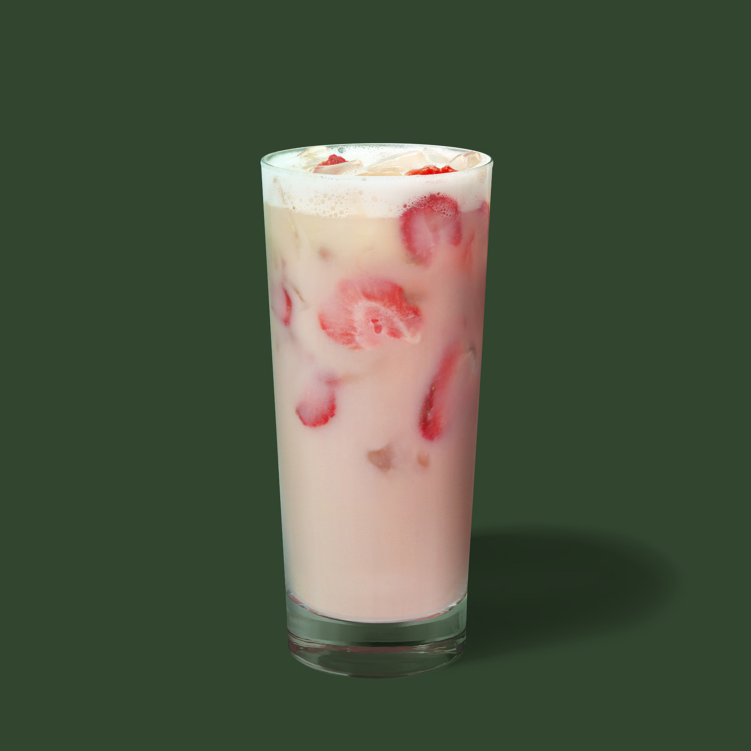 Una bevanda fresca dai dolci sapori di fragola e note di Açai, shakerata con bevanda vegetale a base di cocco, rifinita con pezzetti di fragola