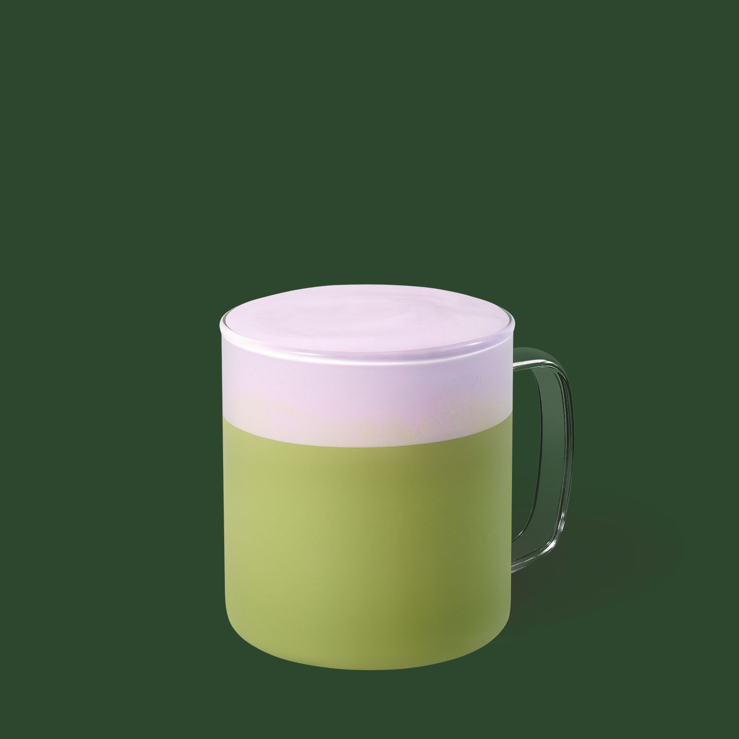 Matcha tè latte caldo con schiuma fredda a base di latte e salsa al gusto di vaniglia e ube.