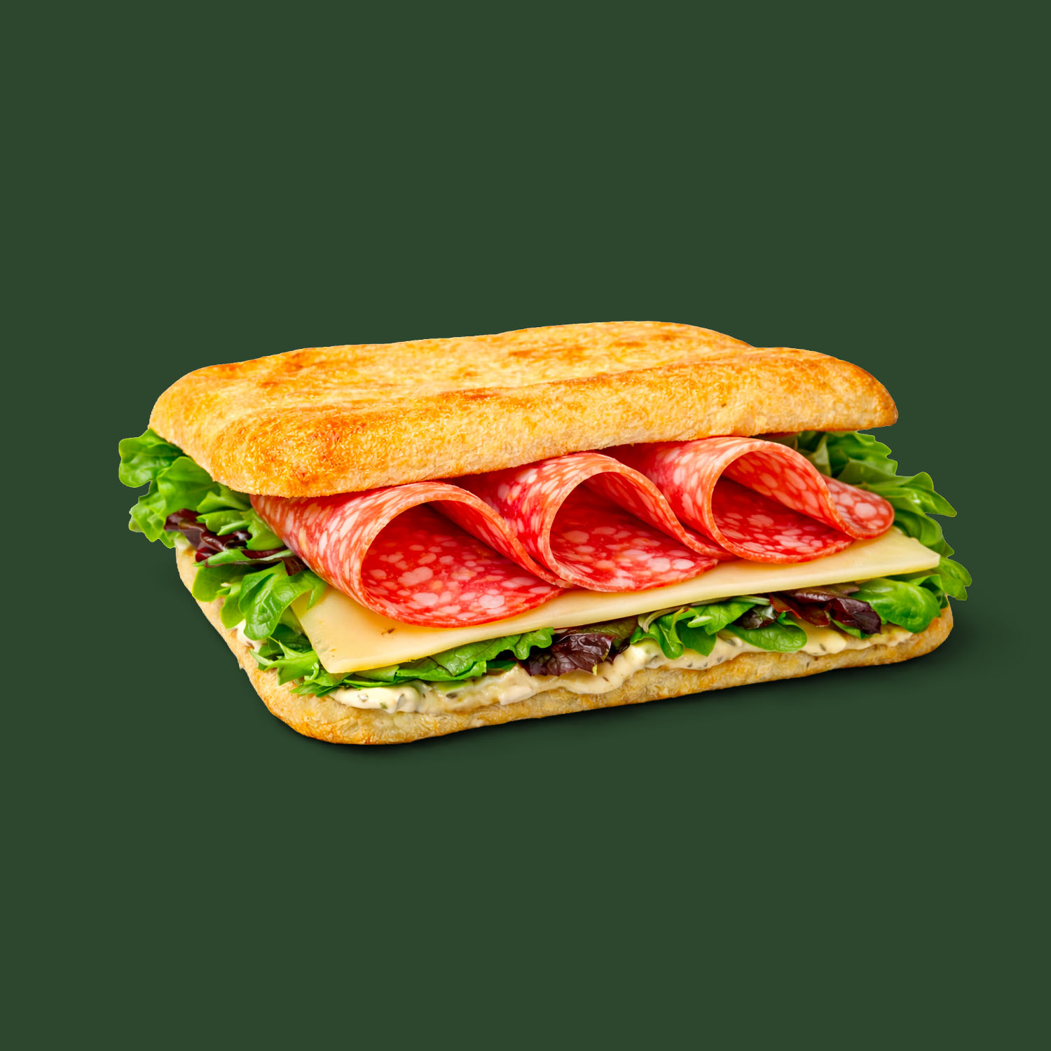 Classico panpinsa dall’impasto leggero con lievito madre e crosta croccante, farcito con salame, edamer, misticanza e salsa vegetale.
