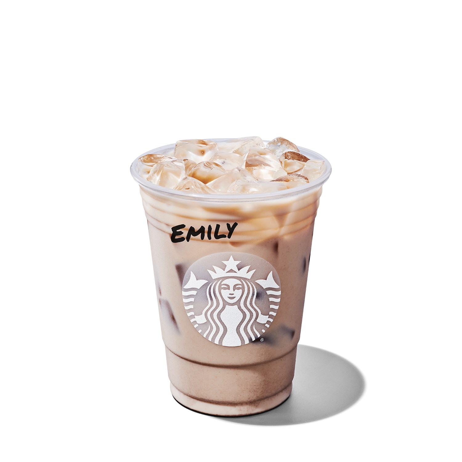 Iced Chai Tea Latte con bevanda alla mandorla e sciroppo al caramello.